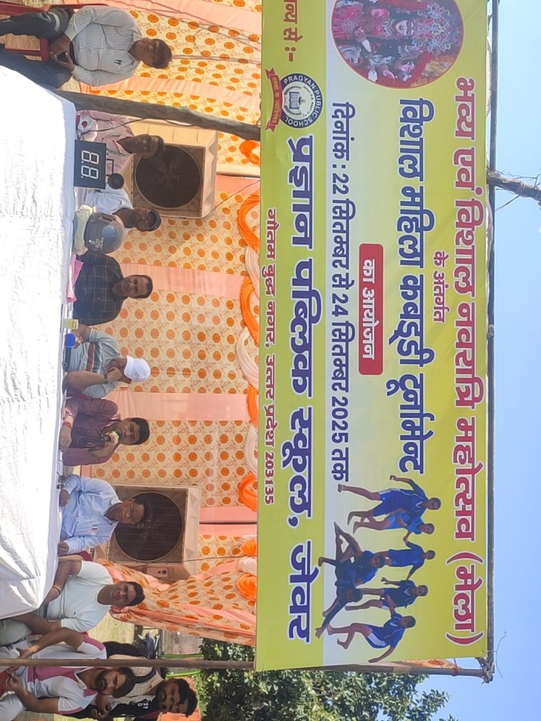 Description : Pragyan Public School feels proud to announce that it has once again been entrusted with the responsibility of organising the Girls Kabaddi Tournament to be held at Devi Mandir Stadium from 22nd to 24th September 2025. The tournament was ceremoniously inaugurated with a Hanuman Poojan performed by Durga Mandir Samiti Adhyaksh Shri Surendra Kaushik ji, Kosadhyaksh Shri Devesh Jain ji, Shri Kuldeep ji, Manager Pragyan Dr. Harish Sharma ji, Principal Pragyan Dr. Deepti Sharma ji, Treasurer Pragyan Shri Amol Sharma ji, Shri Vijay Sharma ji, and Shri Dev Sharma ji, marking the auspicious beginning of this three-day sports event. The school management expressed its delight at receiving this prestigious opportunity once again and looks forward to showcasing sportsmanship, teamwork, and seamless organisation throughout the championship.