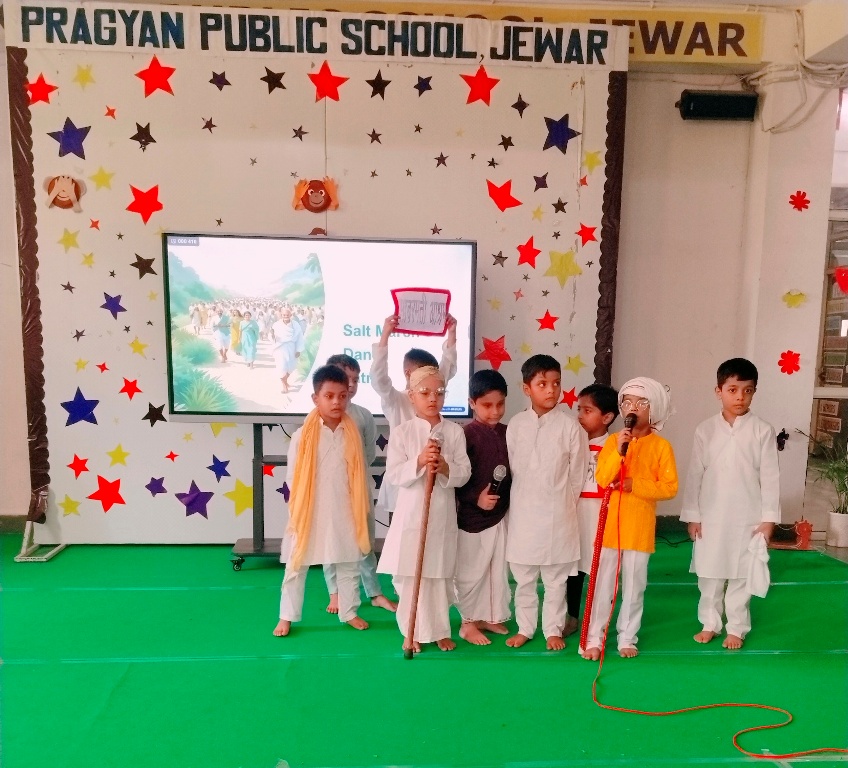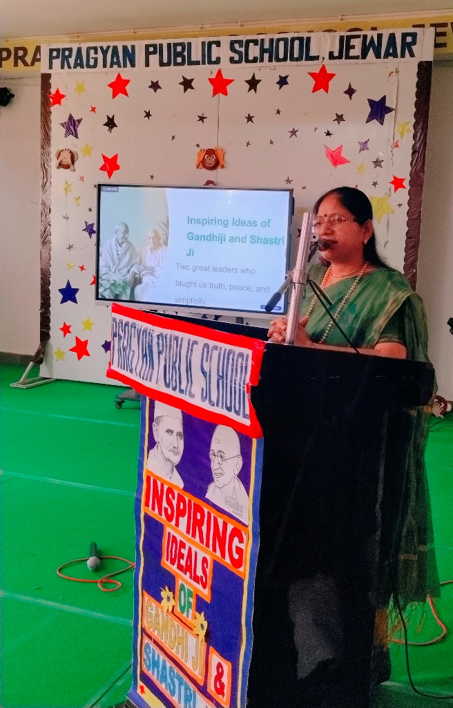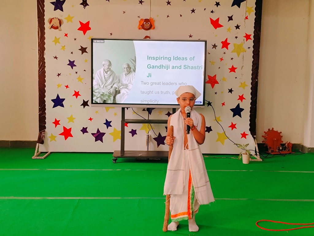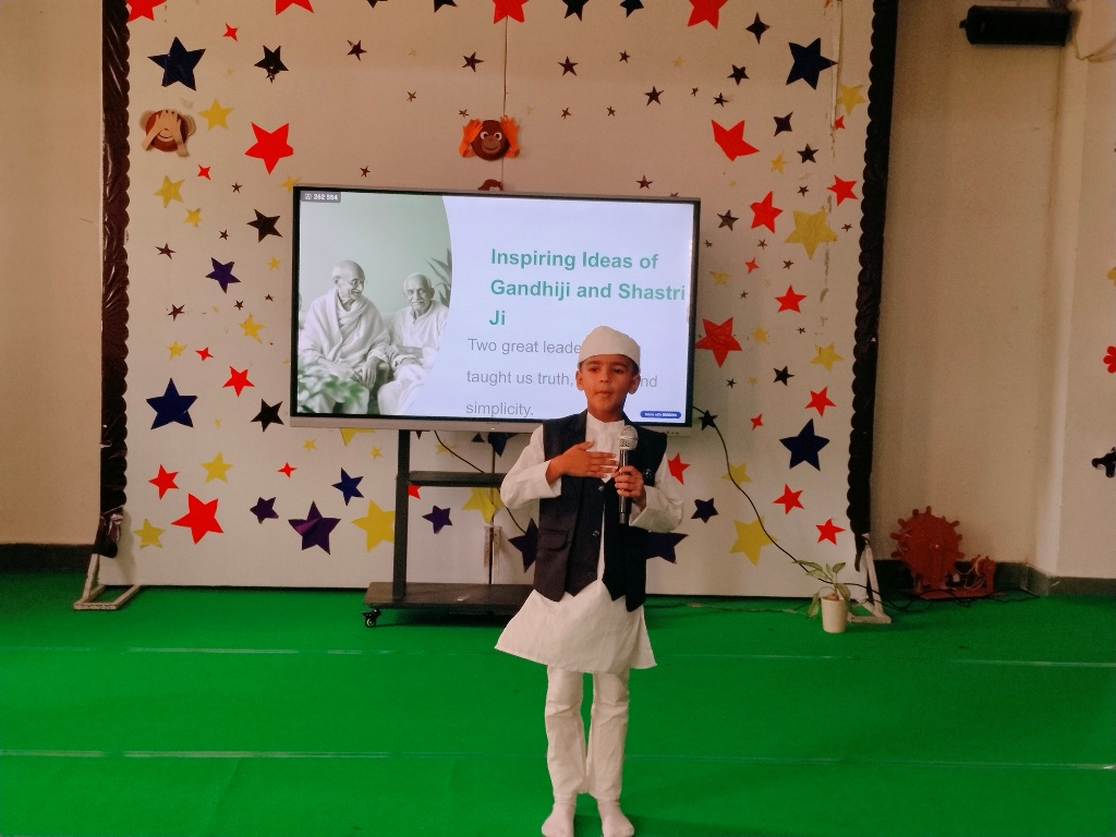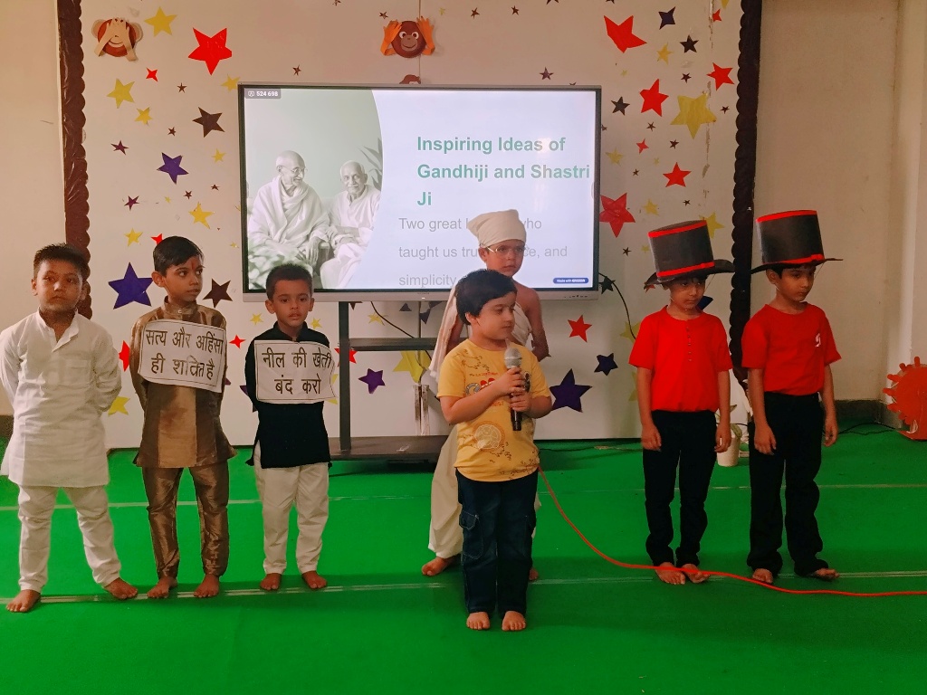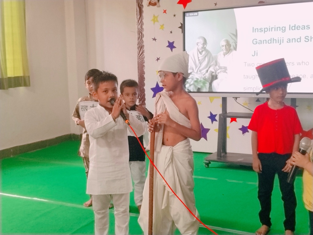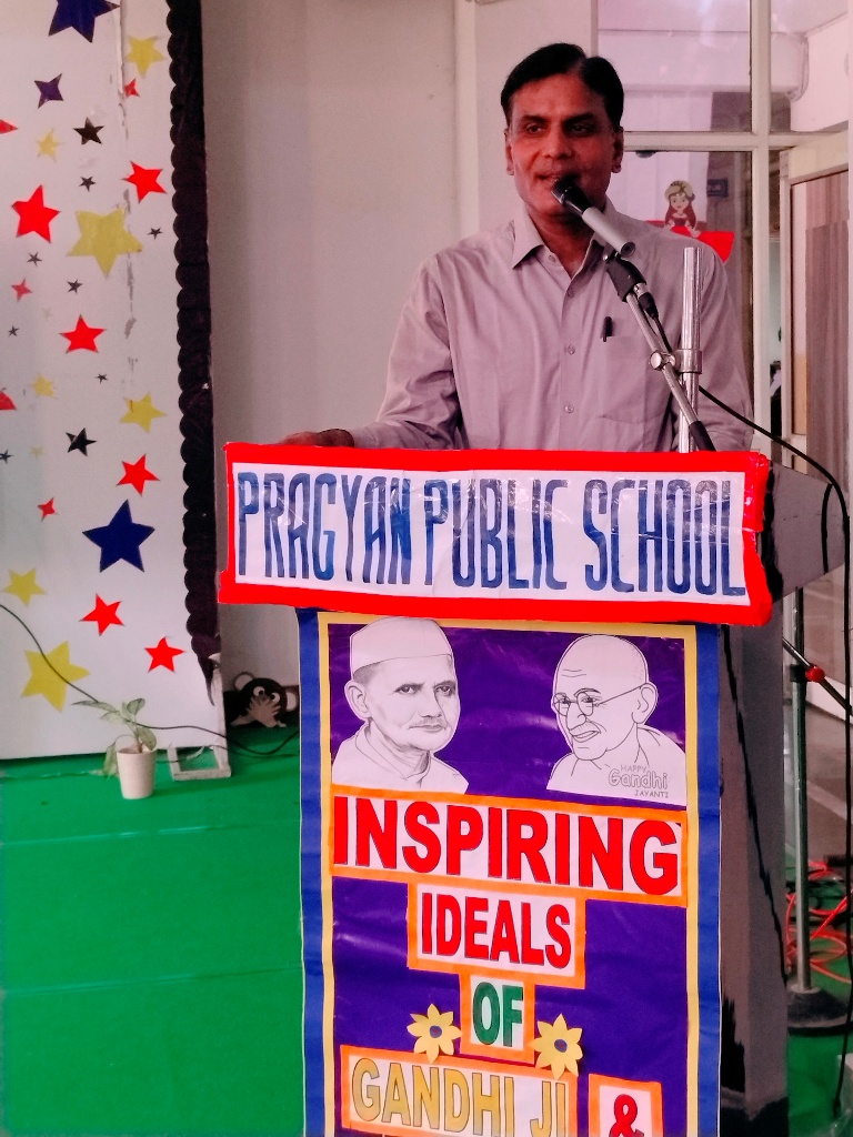 Description : Pragyan Public School celebrated Gandhi Jayanti and Lal Bahadur Shastri Jayanti with great enthusiasm. Our little Pragyans presented beautiful jhankis, dances, songs, and role plays, spreading the values of truth, peace, non-violence, and simplicity taught by Bapu and Shastri Ji. The celebration inspired everyone to walk on their path of ideals.