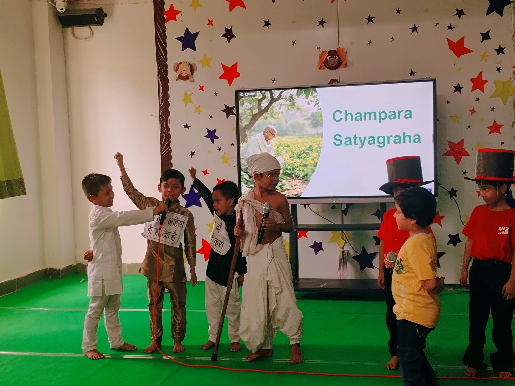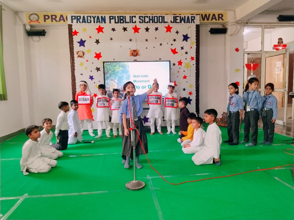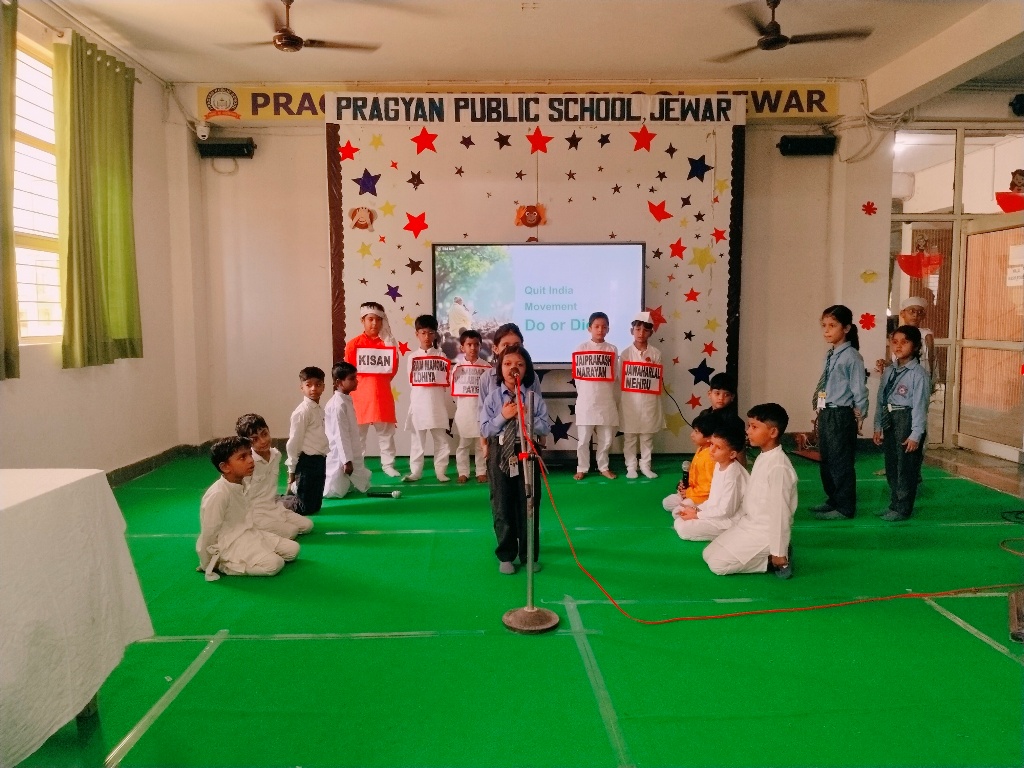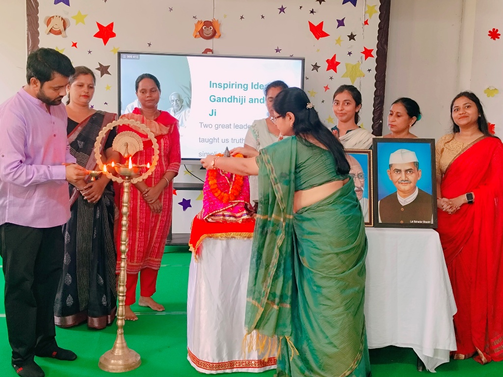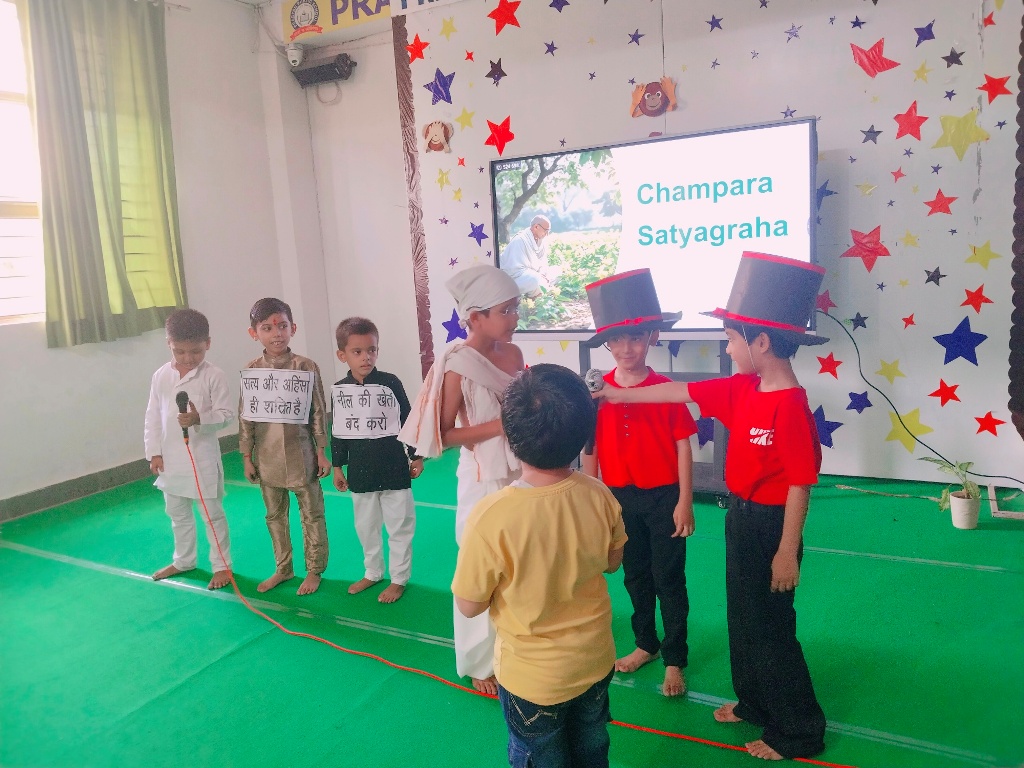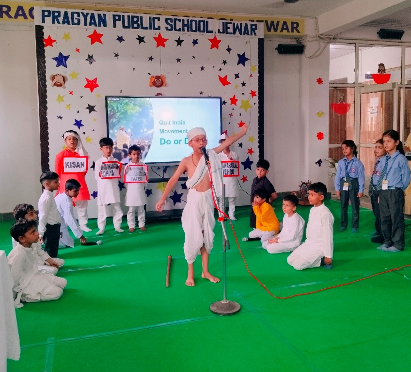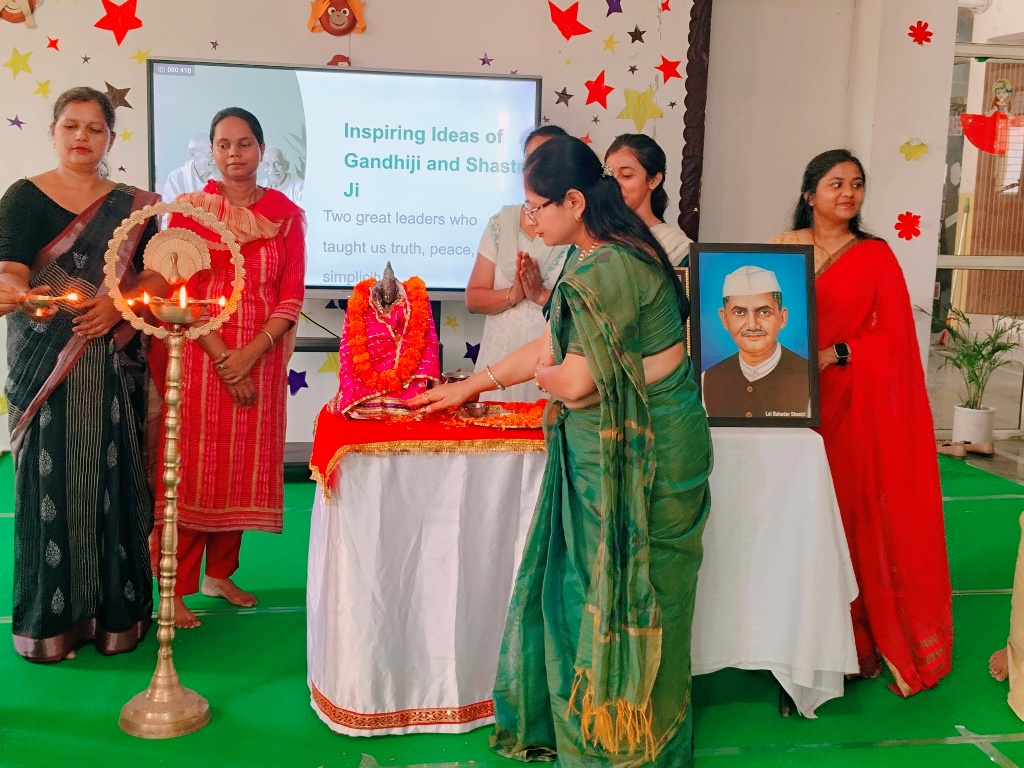 Description : Pragyan Public School celebrated Gandhi Jayanti and Lal Bahadur Shastri Jayanti with great enthusiasm. Our little Pragyans presented beautiful jhankis, dances, songs, and role plays, spreading the values of truth, peace, non-violence, and simplicity taught by Bapu and Shastri Ji. The celebration inspired everyone to walk on their path of ideals.