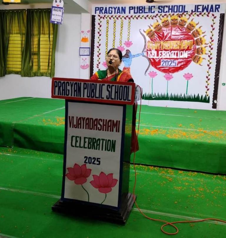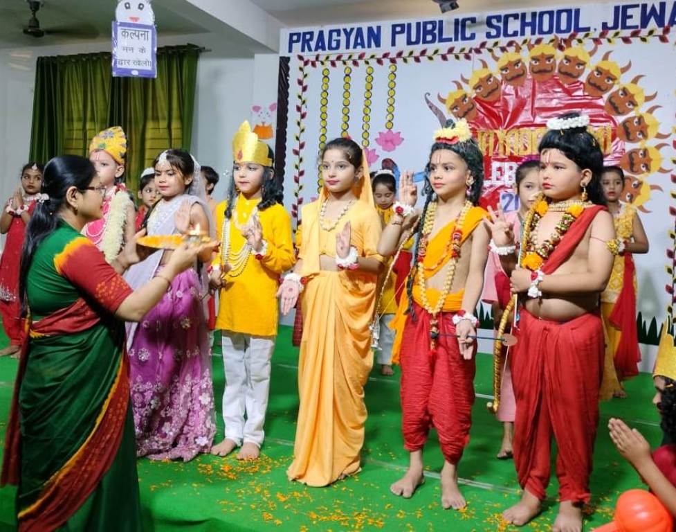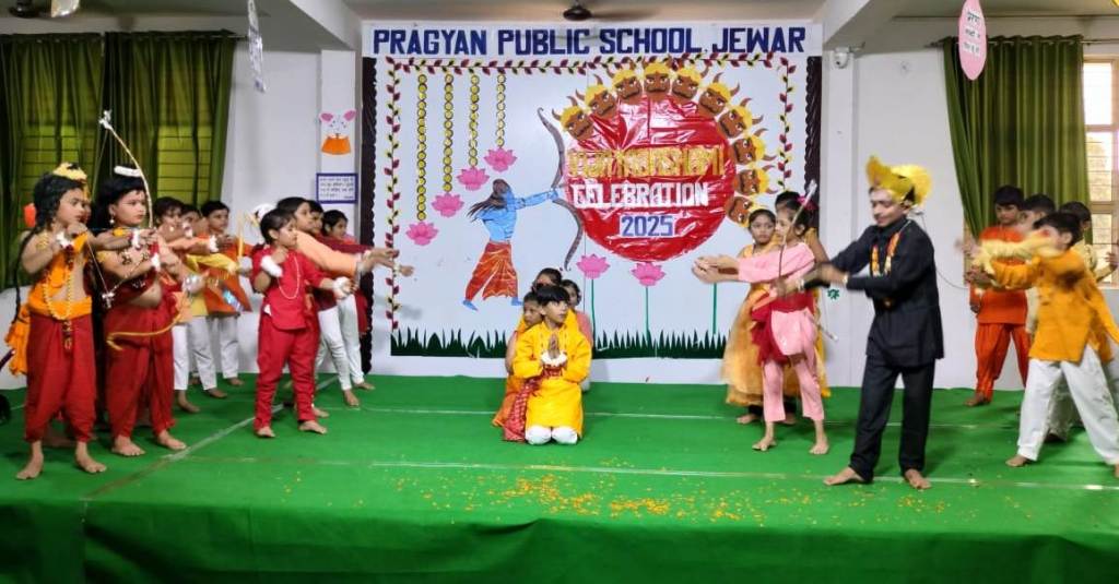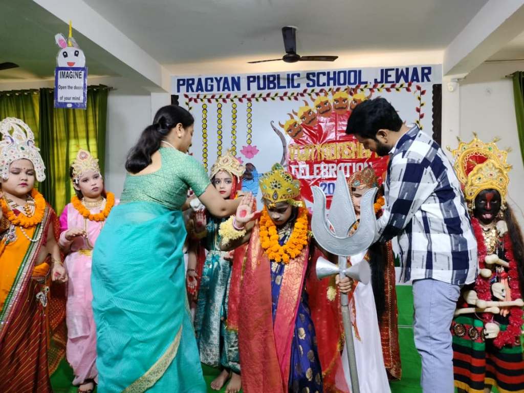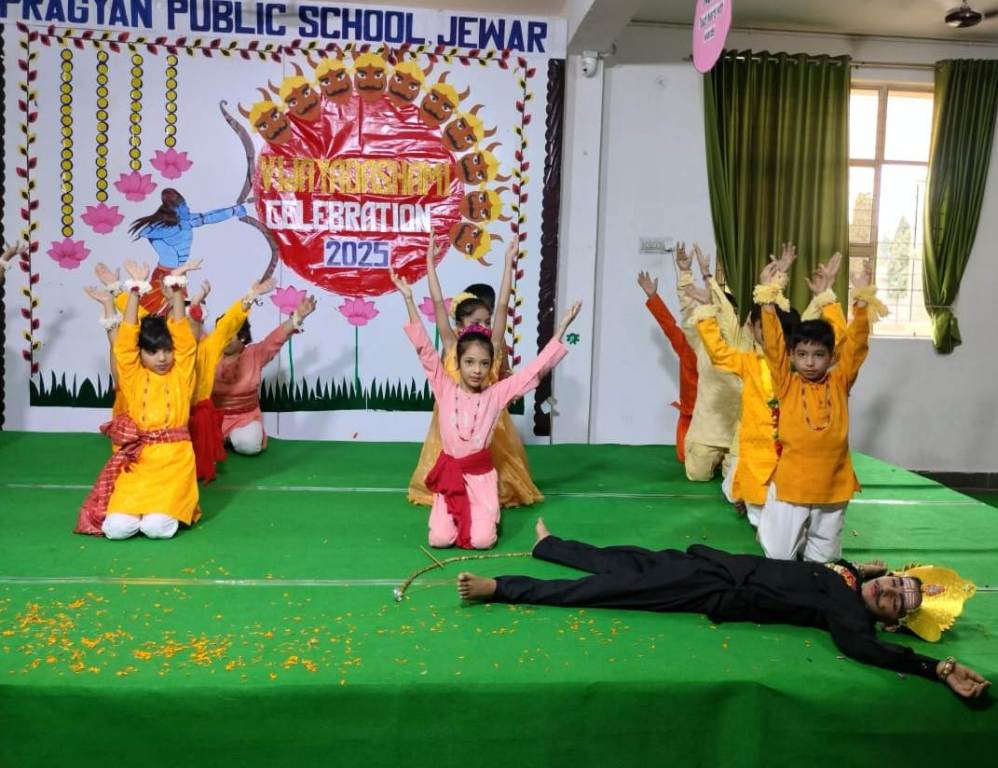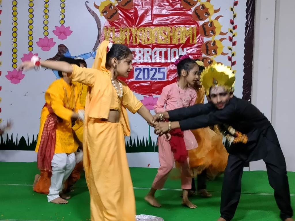 Description : The students captivated everyone with a vibrant Jhanki of Nav Durga, an energetic Garba dance, and a soulful Ramayan skit—beautifully conveying the eternal message of the victory of good over evil. The celebration filled the campus with joy, cultural vibrance, and festive fervor. #Vijayadashmi #NavDurga #Ramayan #Celebration #PragyanPublicSchool