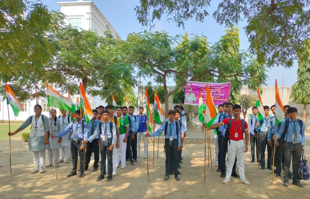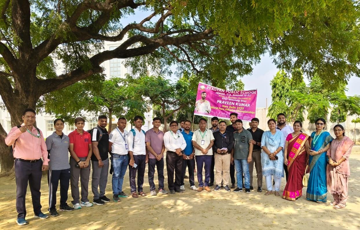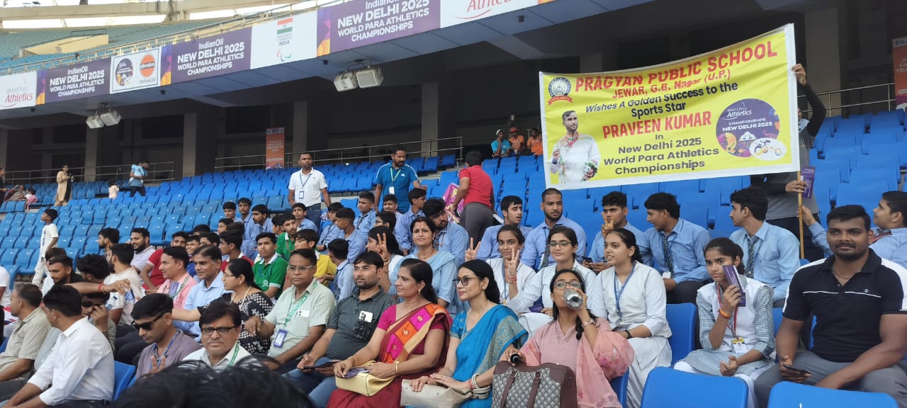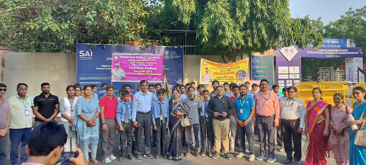 Description : Teachers and students of Pragyan Public School, Jewar left for Jawaharlal Nehru Stadium, New Delhi, to cheer for their proud alumnus and 2019 batch Paralympian Praveen Kumar, who is participating in the World Para Athletics Championship 2025.