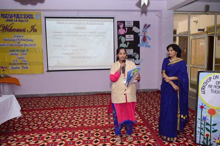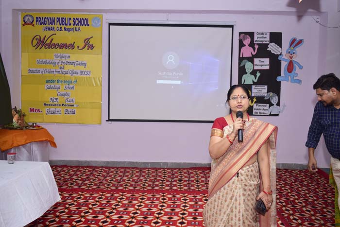 Mrs. Sushma Puniya from ‘Madhuban Educational Books’ was the resource person of this workshop. All the pre-primary and primary teachers of Pragyan Public School Jewar along with the teachers of various member schools of Sahodaya NCR, participated in this workshop .