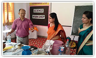 Mrs. Deepti Sharma Principal and Mr. Harish Kumar Sharma (Manager) Welcomed the resource persons By Presenting gifts and greeting cards as token of love to mark love and respect. Mr. Ashish Gupta and Mr. Mukul Rathi demonstrated some innovative experiments based on Air pressure, laws of reflection, refraction, force, measurement of force in Newton, longitudinal waves and transversal waves, Convex and Concave lens.