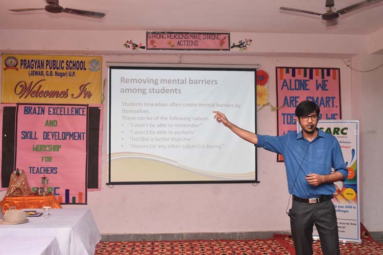 A brain storming workshop for teachers on the subject “BRAIN EXCELLENCE & SKILL DEVELOPMENT” was organized by SARC (Scientific & Applied Research Centre) in Pragyan Public School, Jewar, G. B. Nagar on 11th Sept. 2018, Tuesday.
