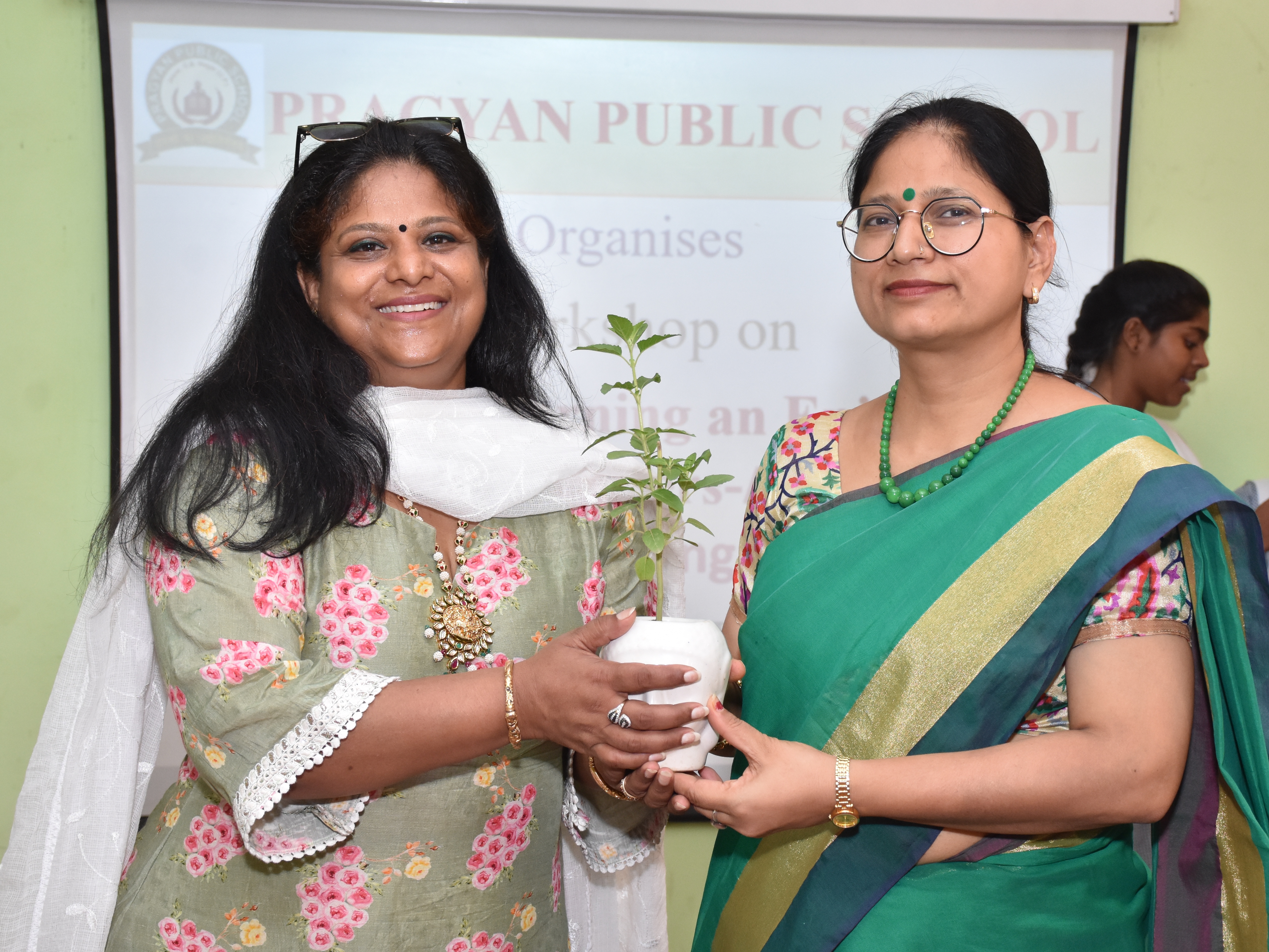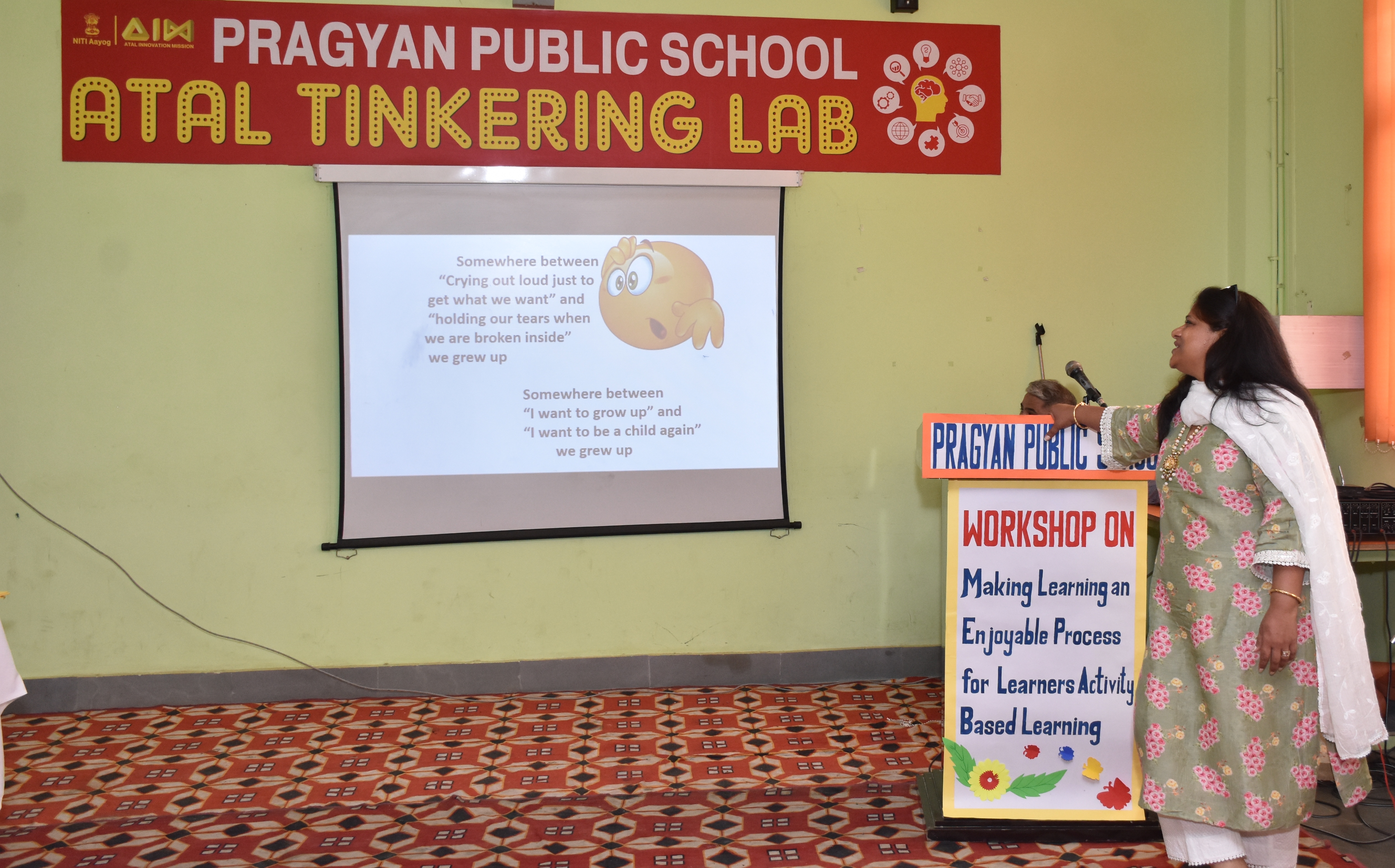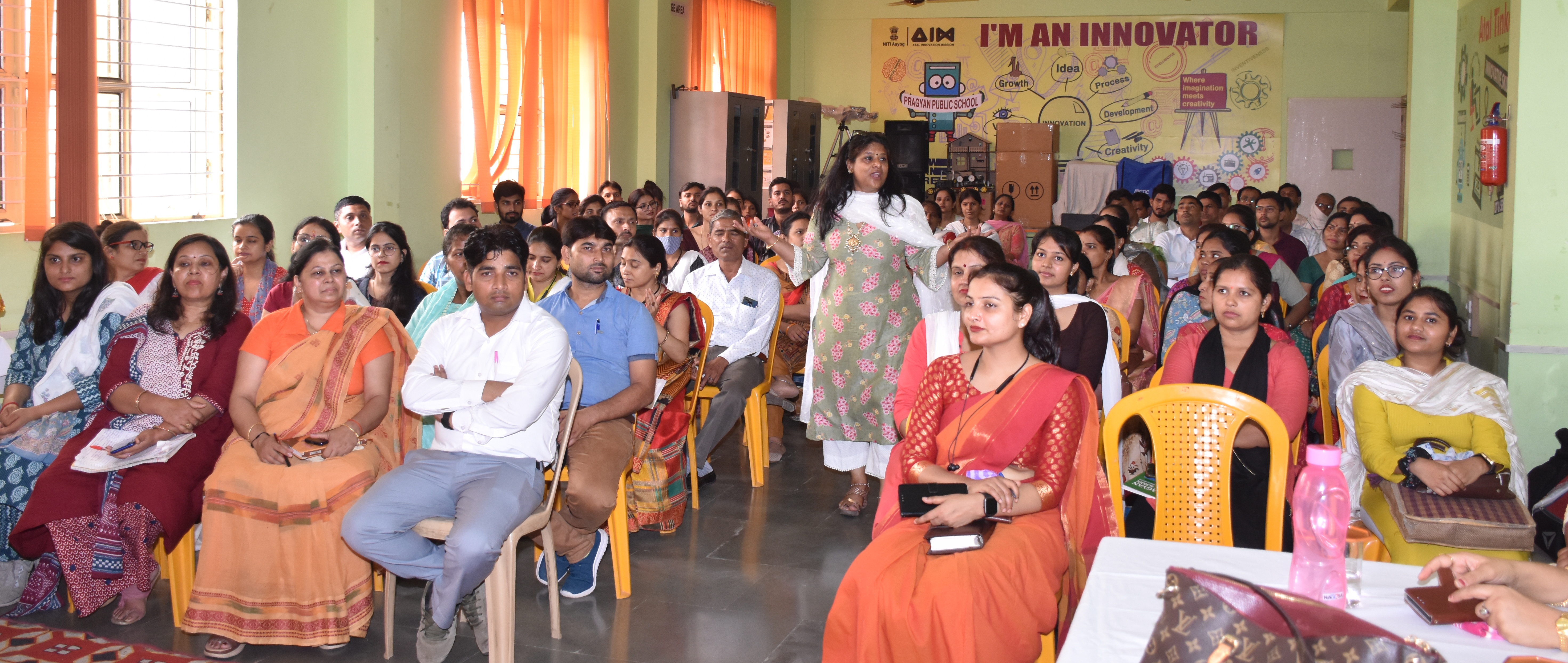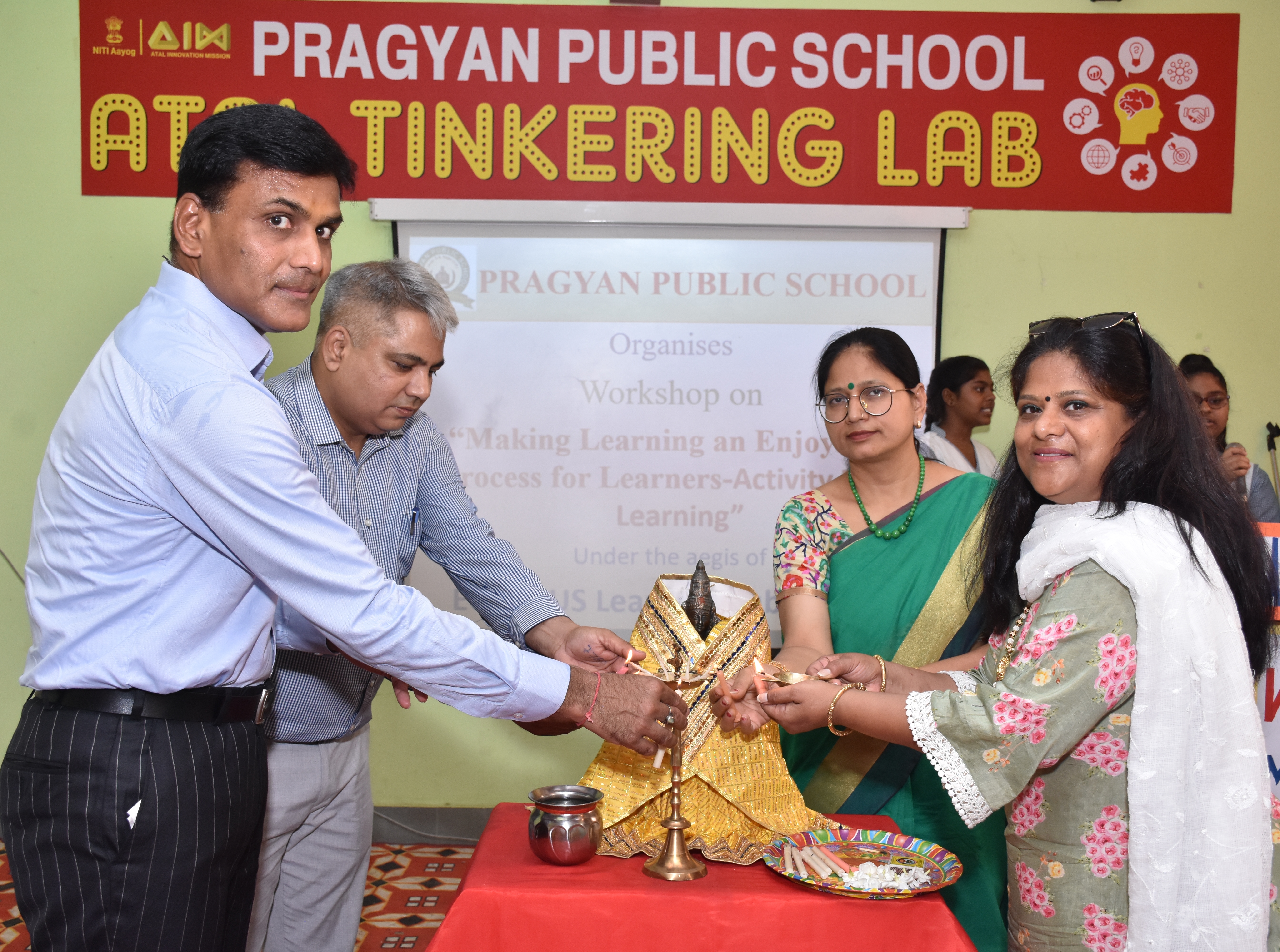 Pragyan Public School organised a workshop for teachers which was conducted by Eupheus Learning Publication. The topic of the workshop was "Making Learning an enjoyable process" ..The distinguished guests Mr. Danish and the resource person Ms. Divya Varshney lighted the lamp along with Manager of Pragyan,Mr Harish Kumar Sharma and Principal Ms.Deepti Sharma.