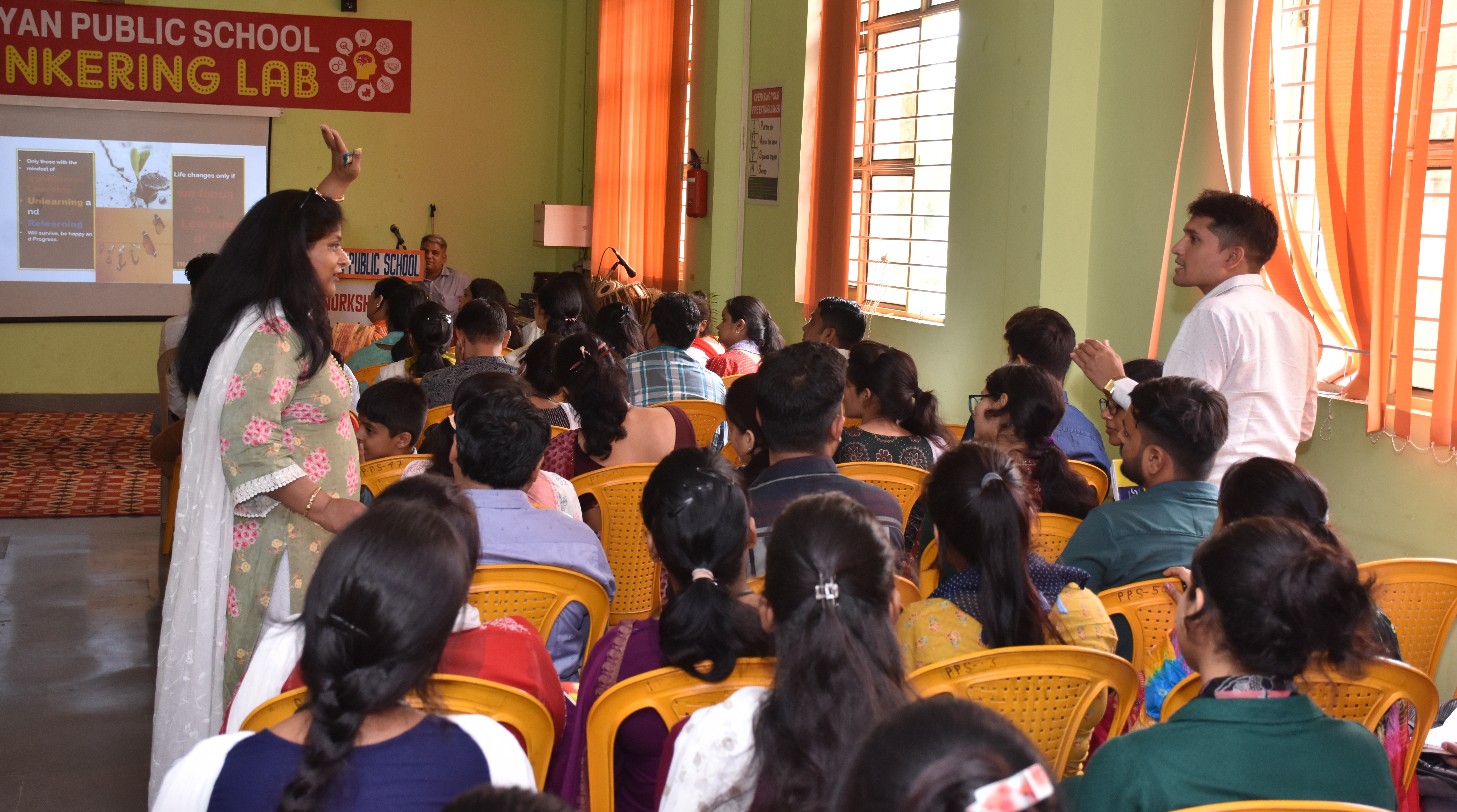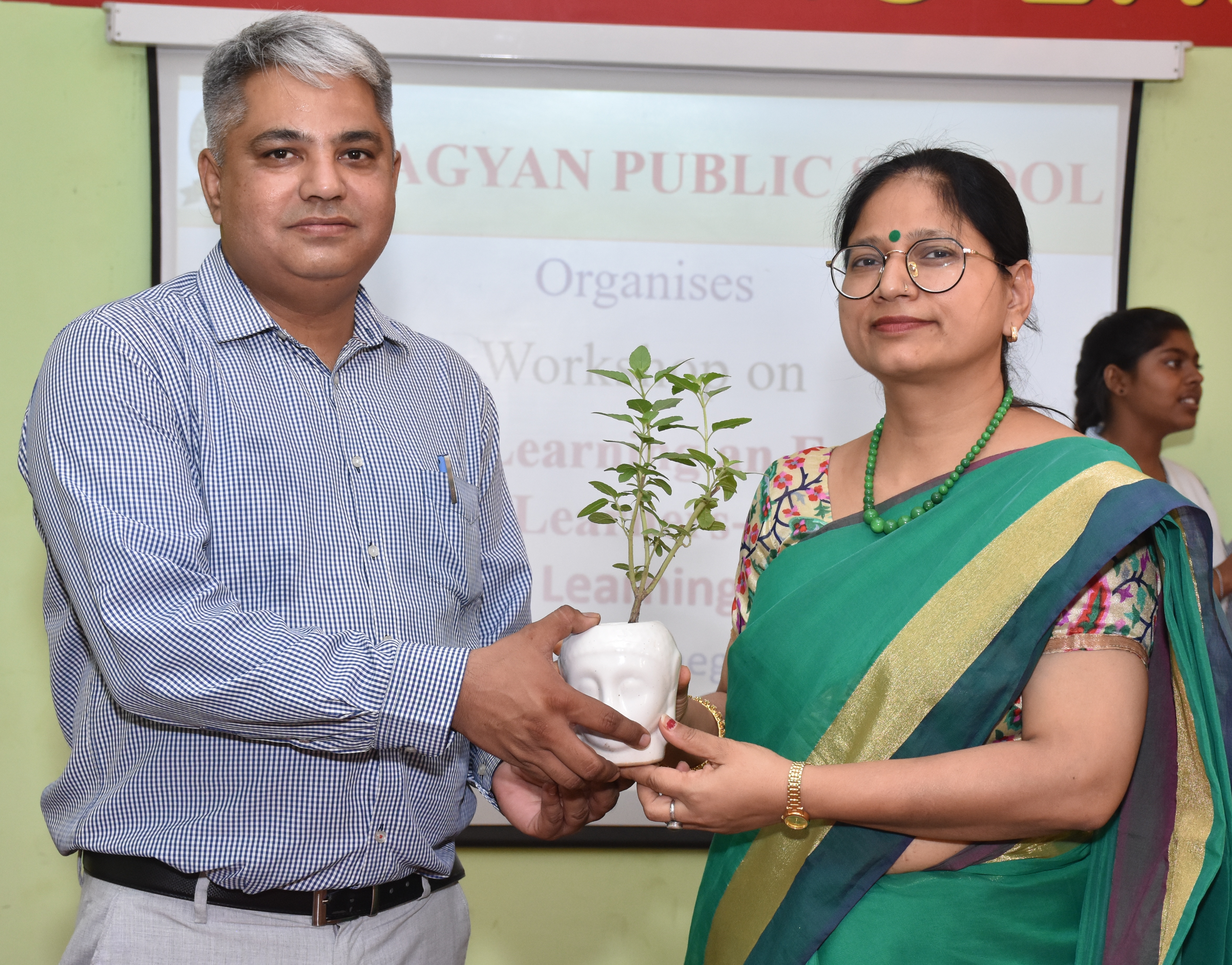 In the beginning of the workshop Mr.Pawan Kumar Sharma an expert in 'Financial Literacy and Digital Tools' was welcomed by School’s Manager Mr.Harish Kumar Sharma and Principal of the School Mrs.Deepti Sharma by presenting a bouquet to the resource person as a token of love.