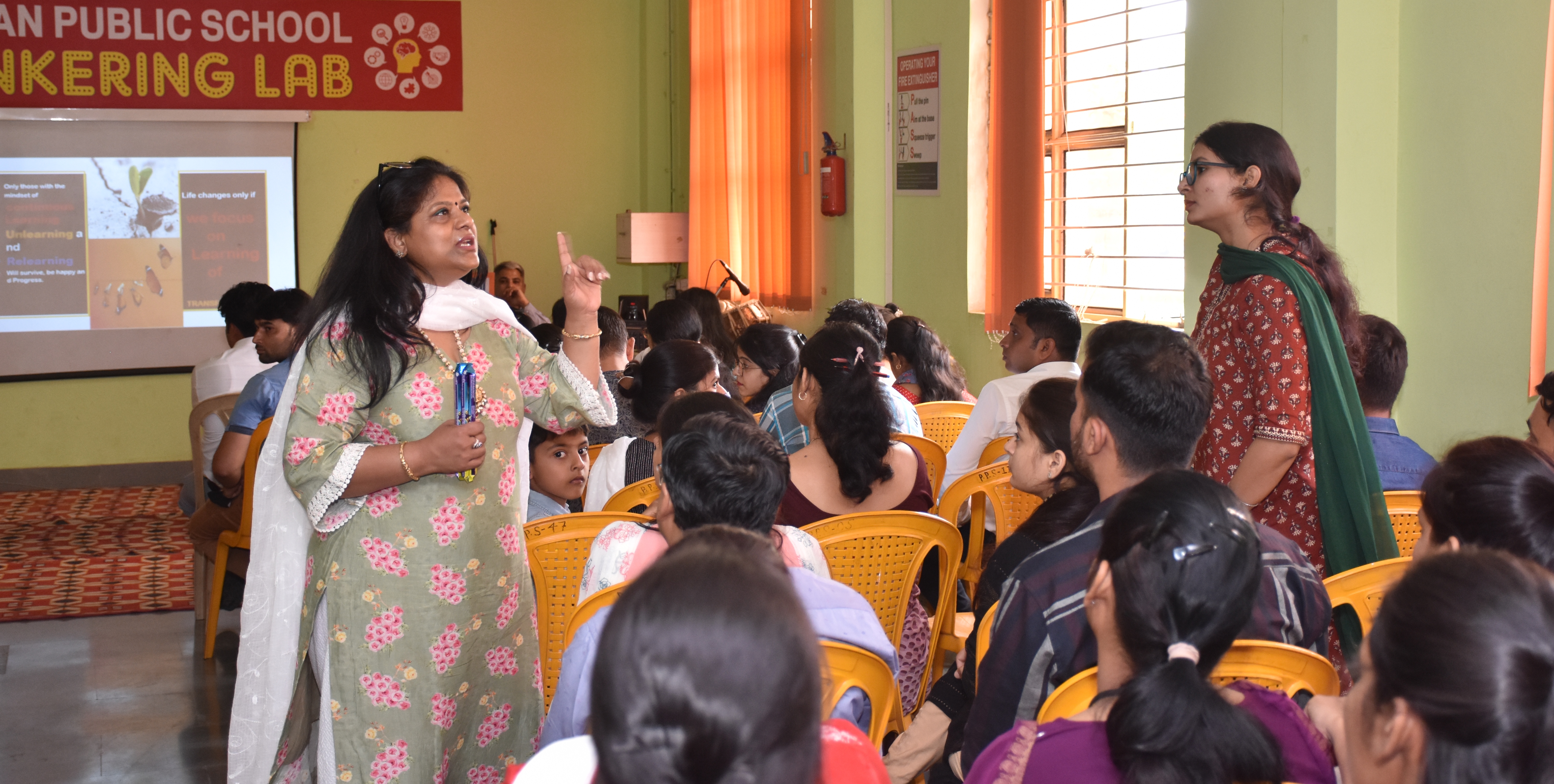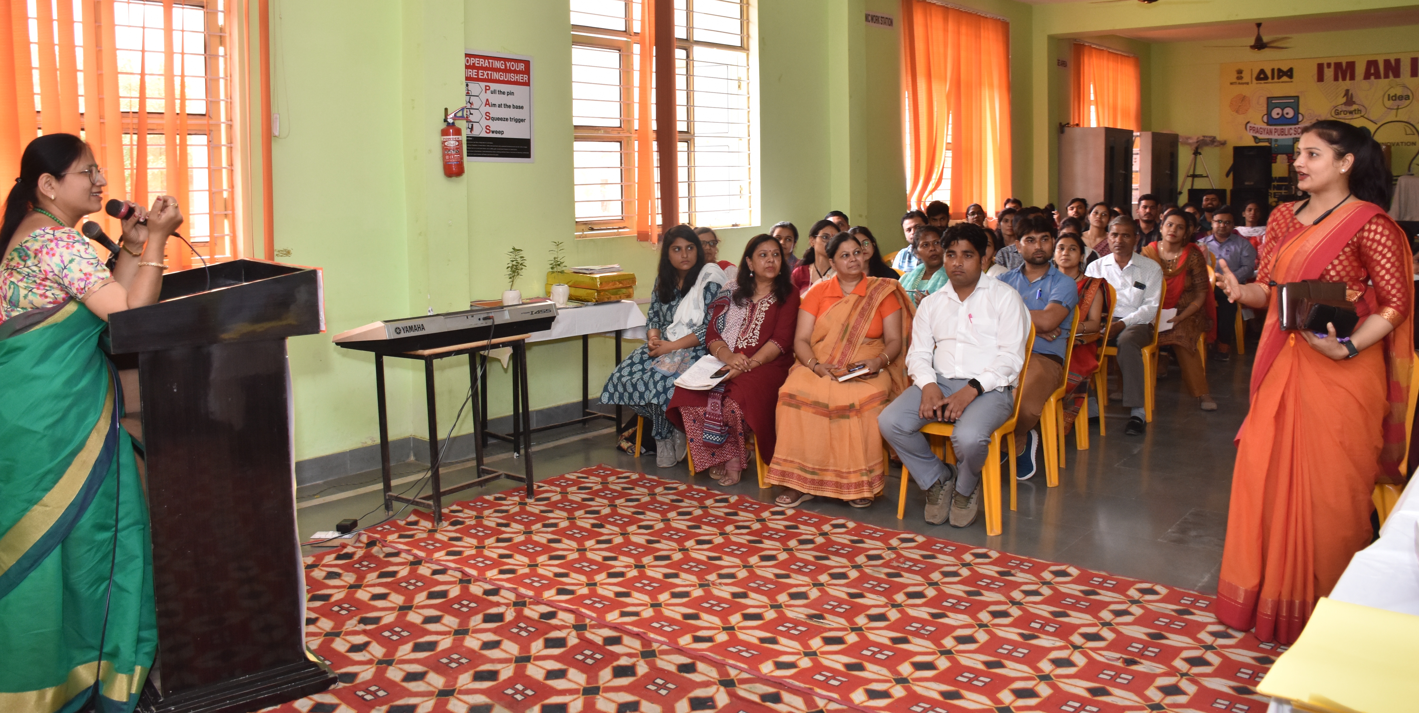 The event was executed with the melodious saraswati vandana by our students.Our manager sir and Principal ma'am greeted and presented them beautiful cards and sapling.The resource person Ms. Divya Varshney delivered valuable techniques and strategies for teachers which are helpful in teaching learning process.She also emphasized on activity based learning and experiential Learning. The concept of today's education should be learning, unlearning and relearning.
