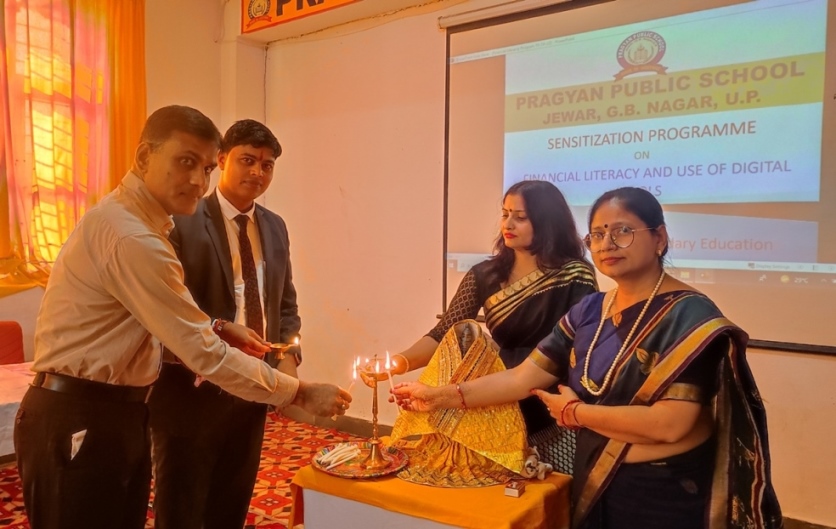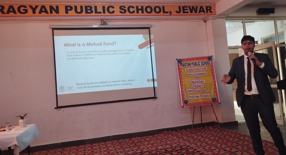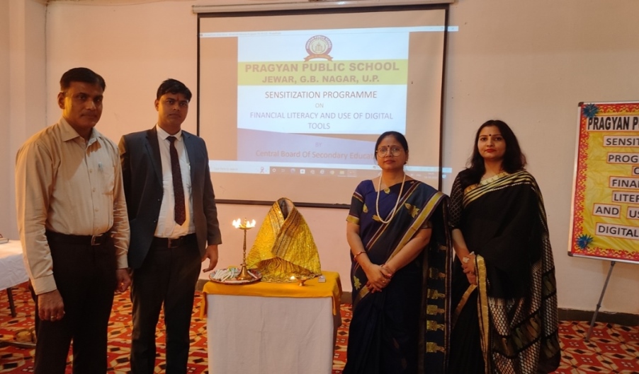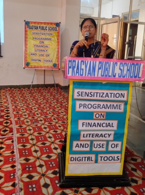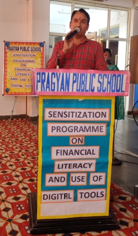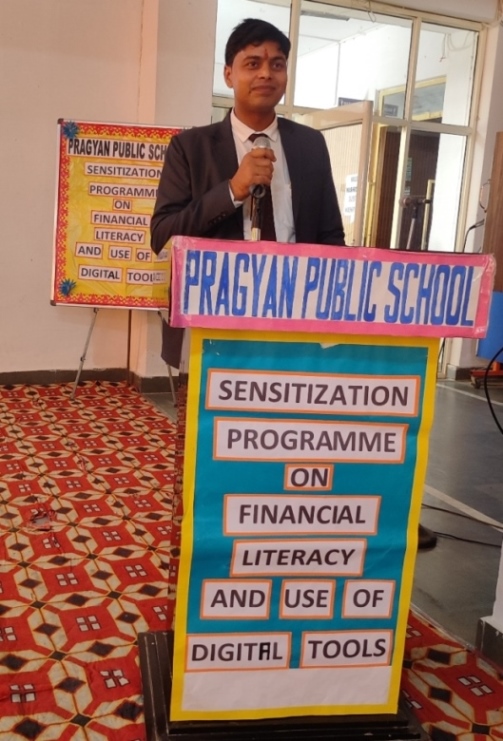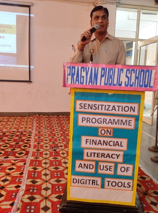 Jewar,19 October 2022,A workshop on 'Financial Literacy and use of Digital Tools' was organised in Pragyan Public School,Jewar by Mr.Pawan Kumar Sharma. The Objective of the workshop was to create awareness regarding the proper use of digital applications and to protect ourselves from the digital fraud in modern age.